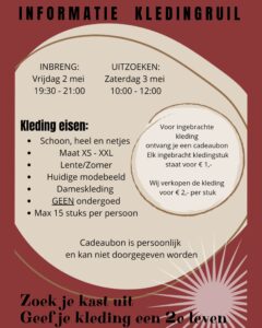 Elk ingebrachte kledingstuk staat voor €1,-. Wij verkopen de kleding voor €2,-